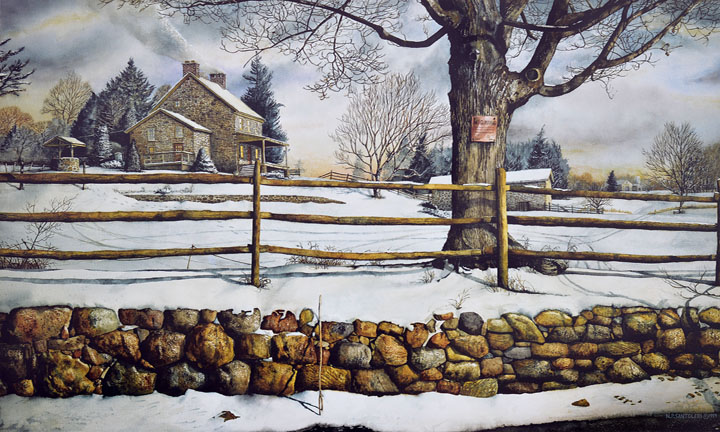 Capturing the essence of Chester County, Pennsylvania, the rolling hills, iconic golden brown field stone and fences is reminiscent of the Chester County that Santoleri grew up in. The simple Quaker farm houses surrounding his childhood home in East Goshen, PA are forever a part of him.